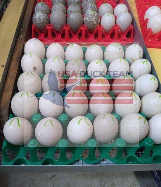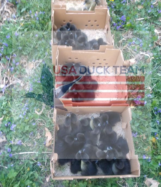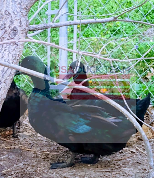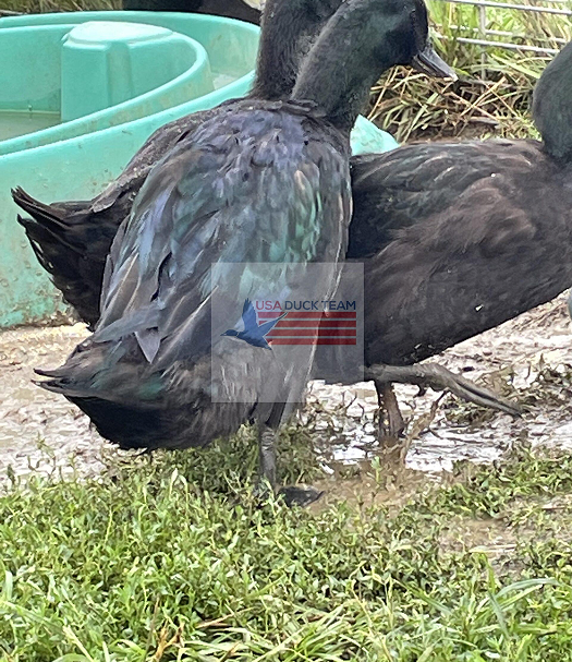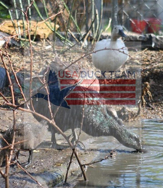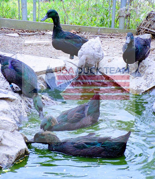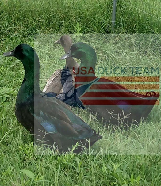 Ducks playing at USA Duck Team World Headquarters and at our partner farms. We believe in free range or open pastured ducks and our hatchery works with partner farms to protect animal welfare. Our ducks are show quality black Cayugas and have been shown. The blue ducks are Blue Solid Dusky ducks and make a great complement to a Cayuga flock.
